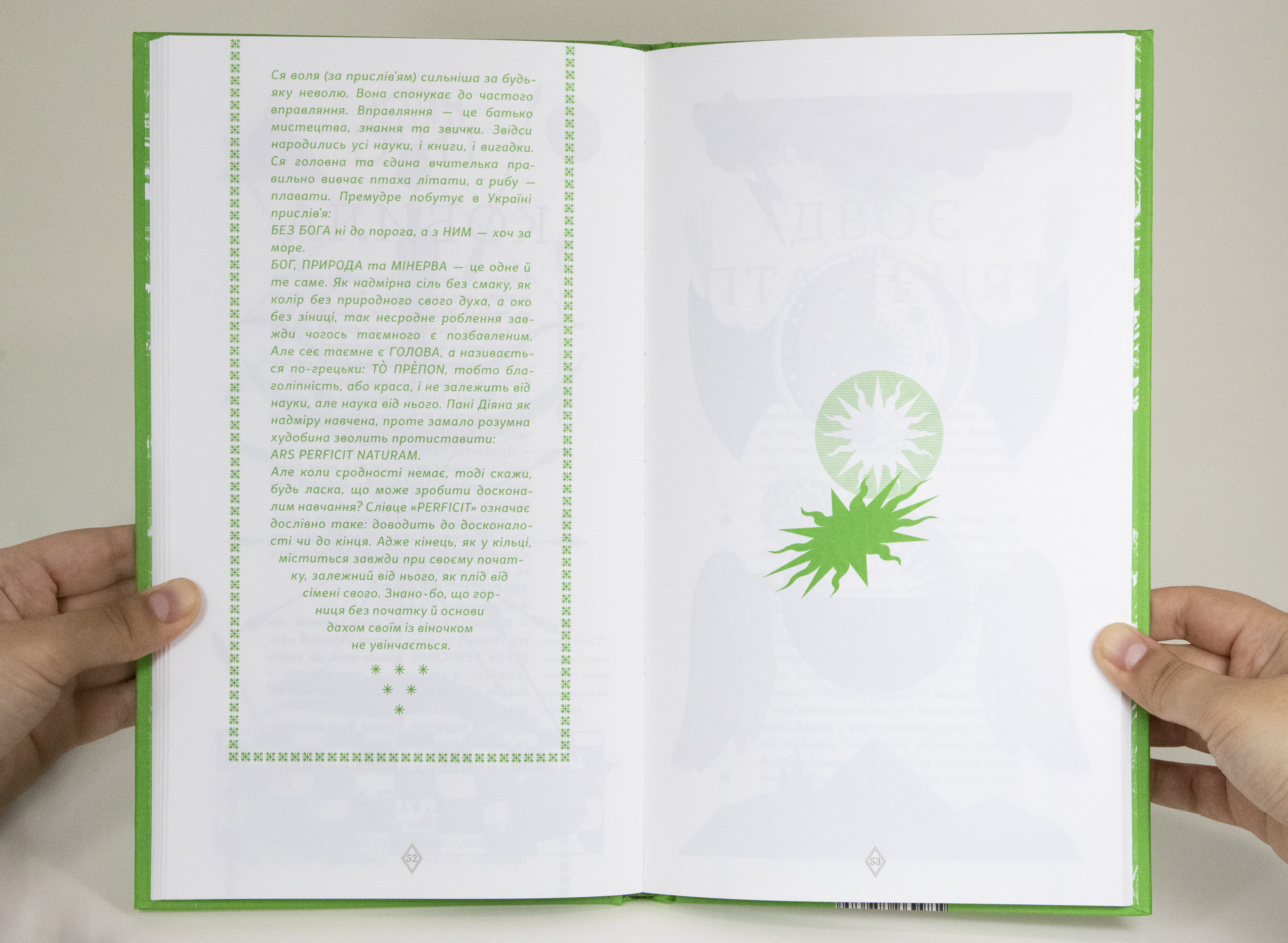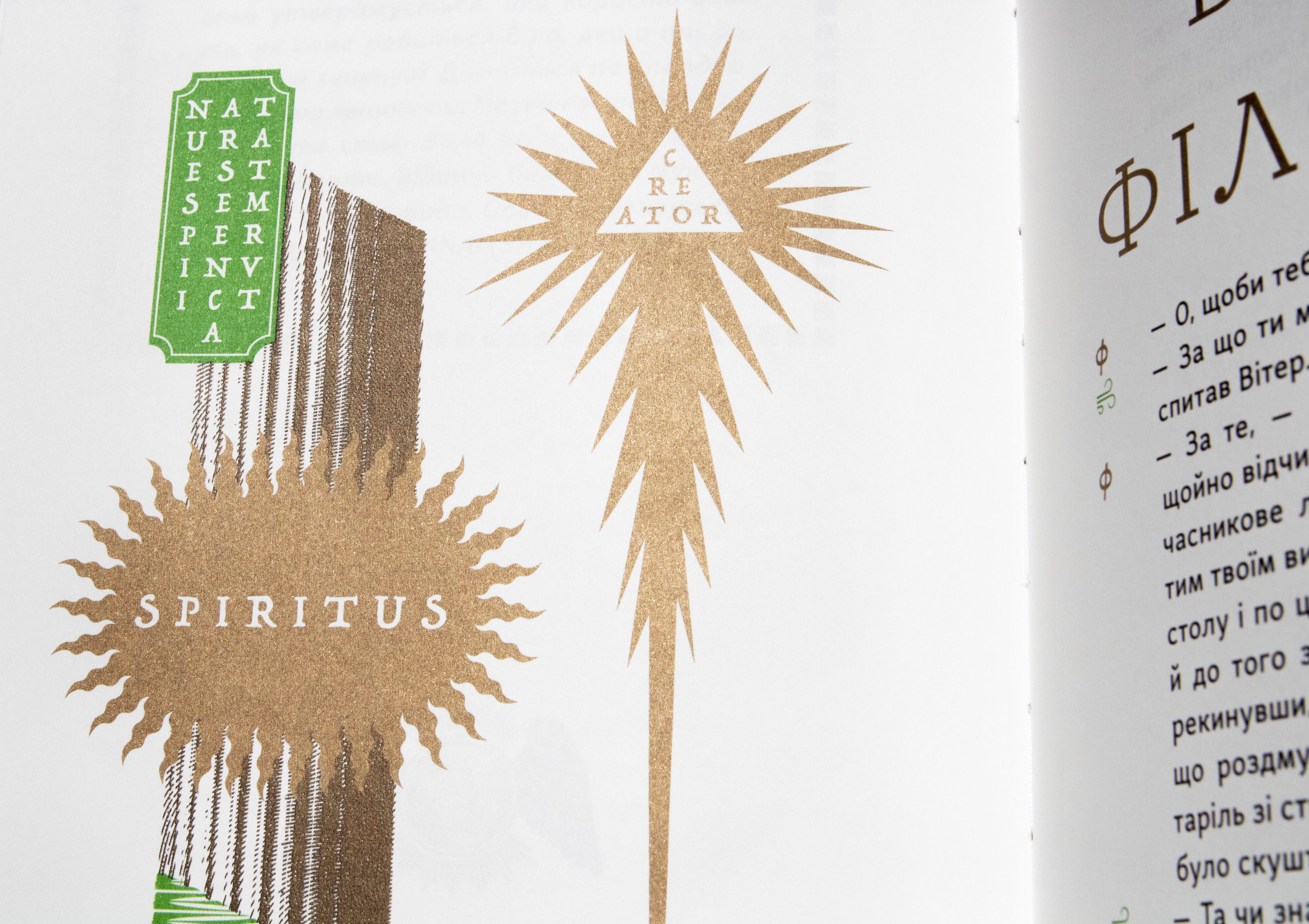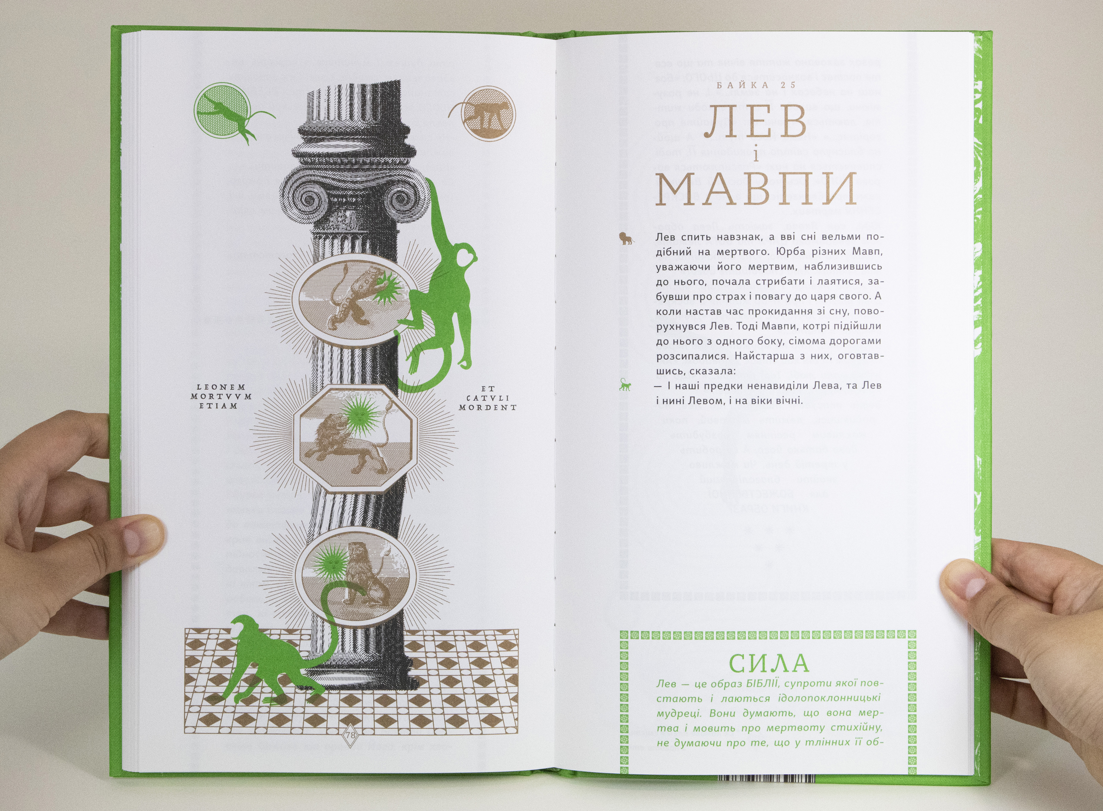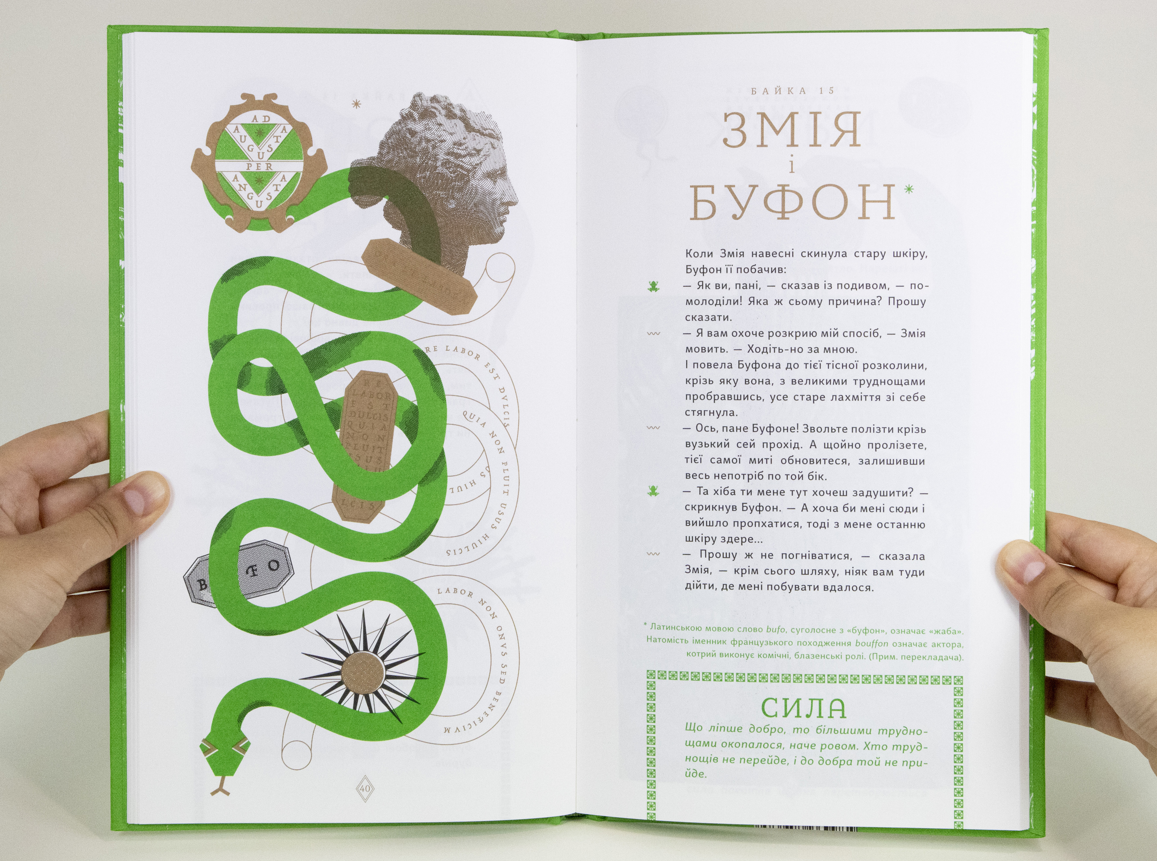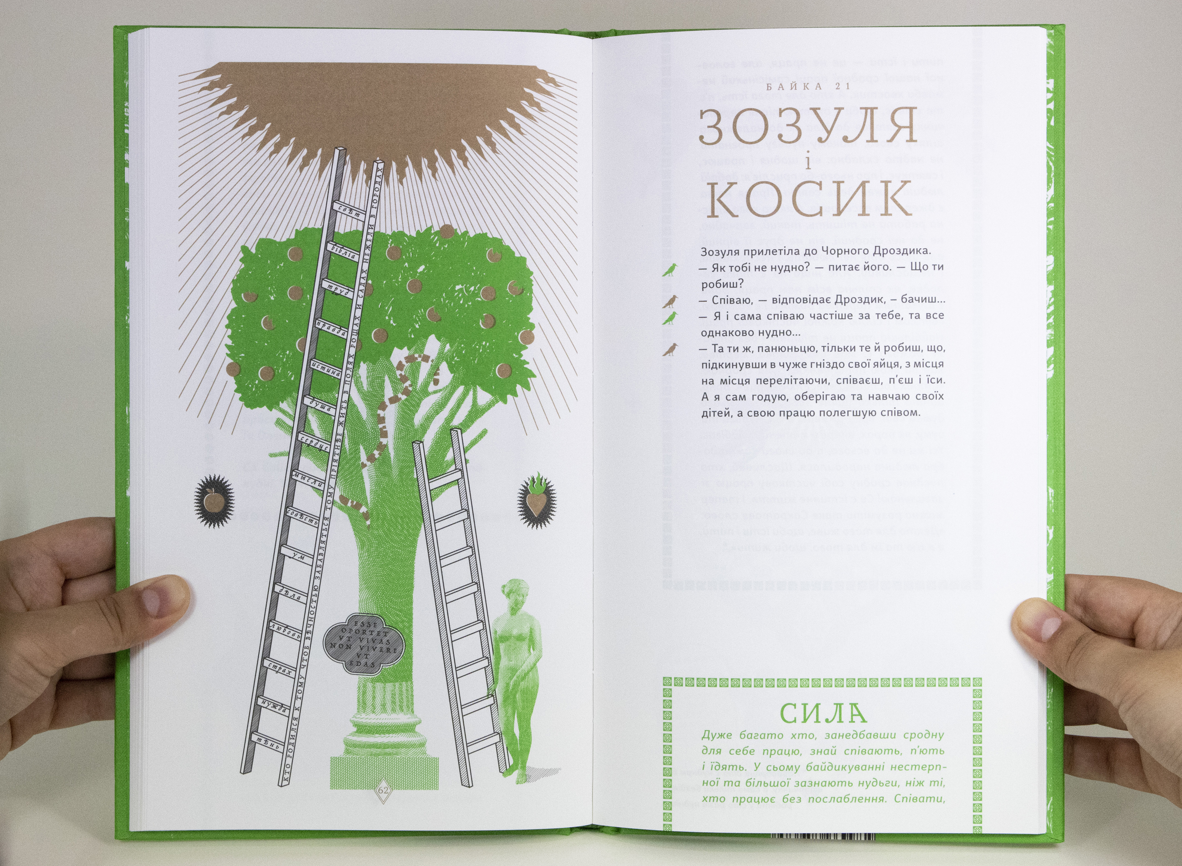 The book written by famous Ukrainian philosopher, writer and thinker of 18th century Hryhorii Skovoroda. 30 fables written in “Aesop’s language” tell about most important topics and teach about humanism, faith, honesty, love, justice. The illustrations for each fable are deeply rooted in baroque engravings aesthetic, biblical texts and ancient philosophy. Every illustration is like a visual rebus to be read and decoded by reader alongside with the texts.