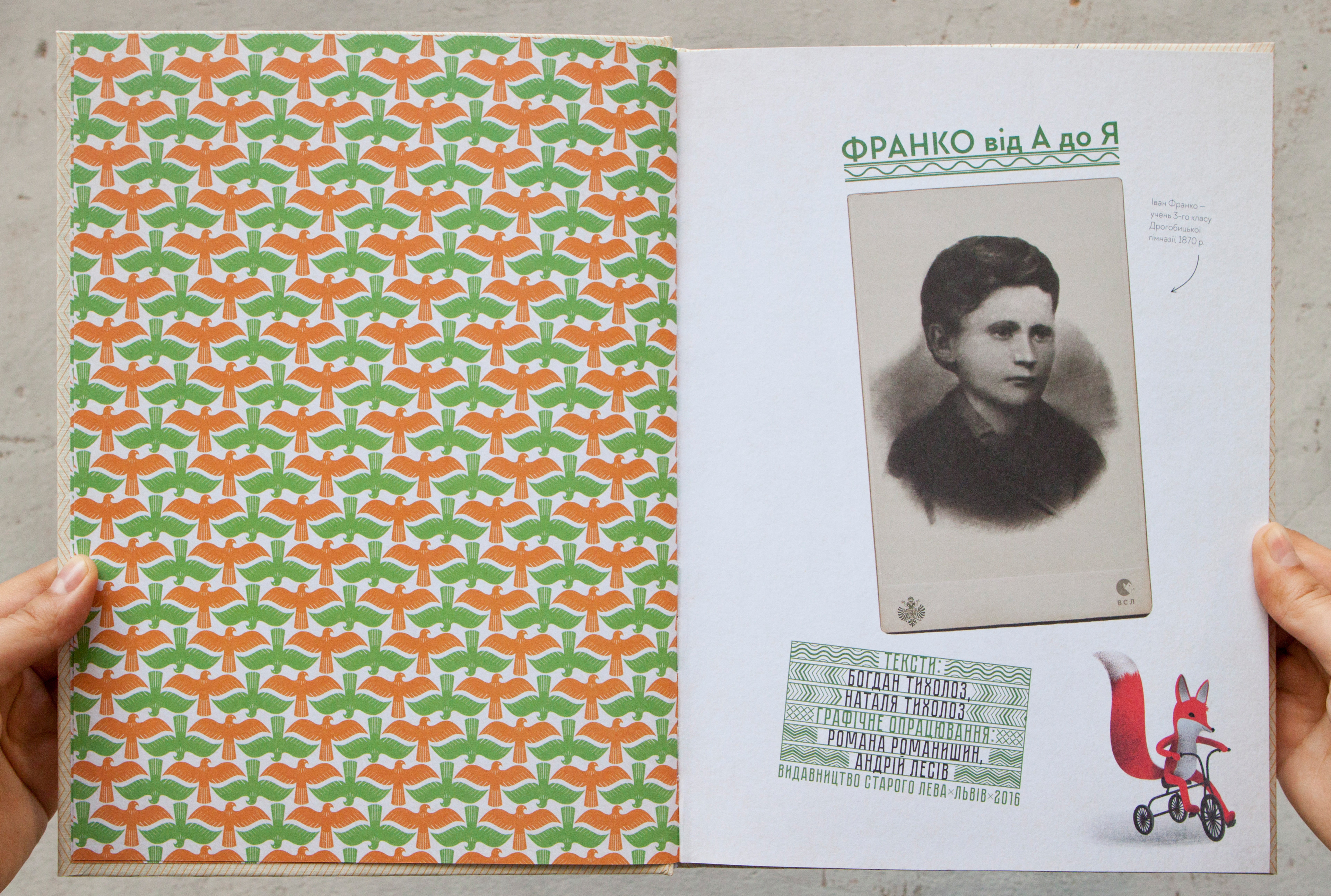"Franko from A to Z" - non-fiction ABC book about famous Ukrainian writer Ivan Franko (1856-1914). Published by Old Lion Publishing House in 2016.
