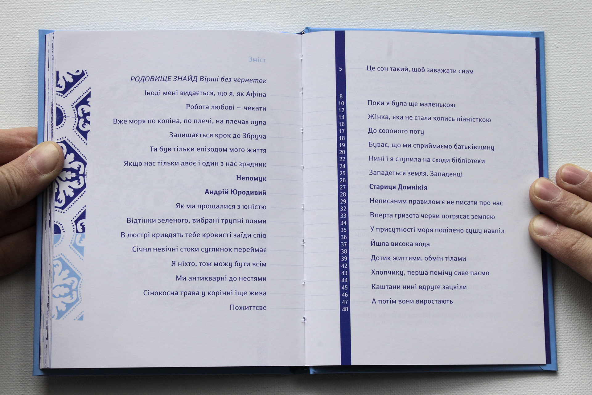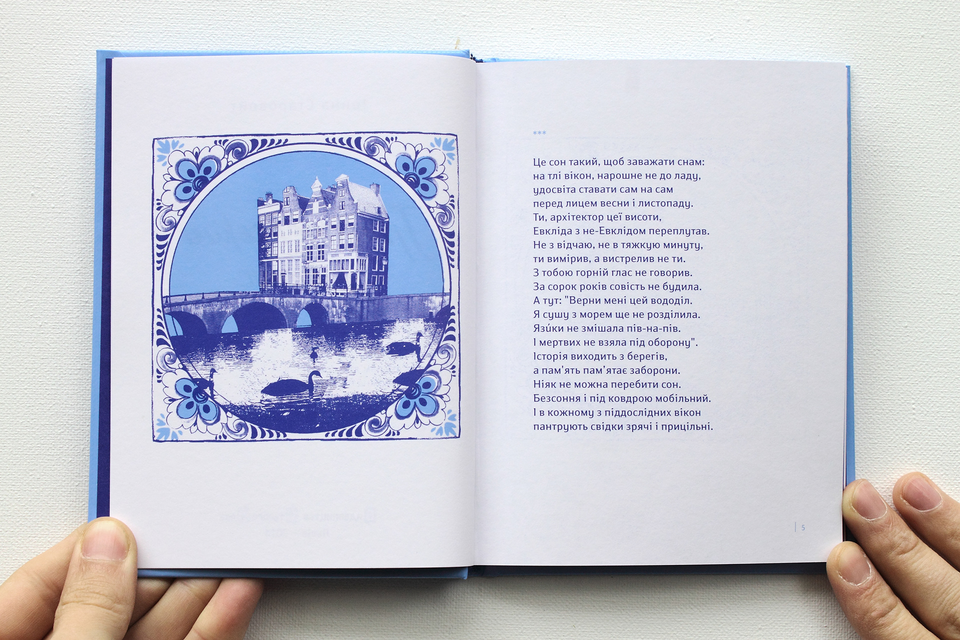 Book of modern Ukrainian poet Iryna Starovoyt, designed by art studio Agrafka. Text was written during author's stay in Groningen, Netherlands. In design of this book we used motives of Delft blue ceramic tiles.