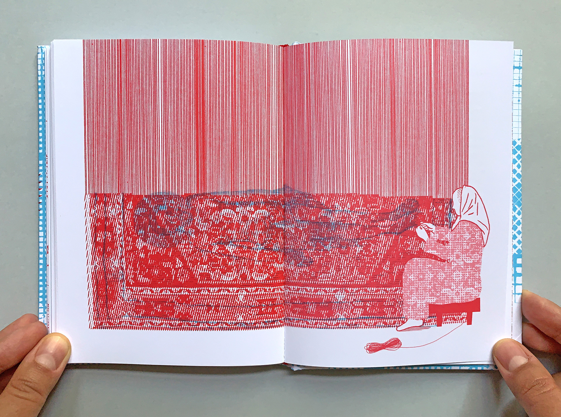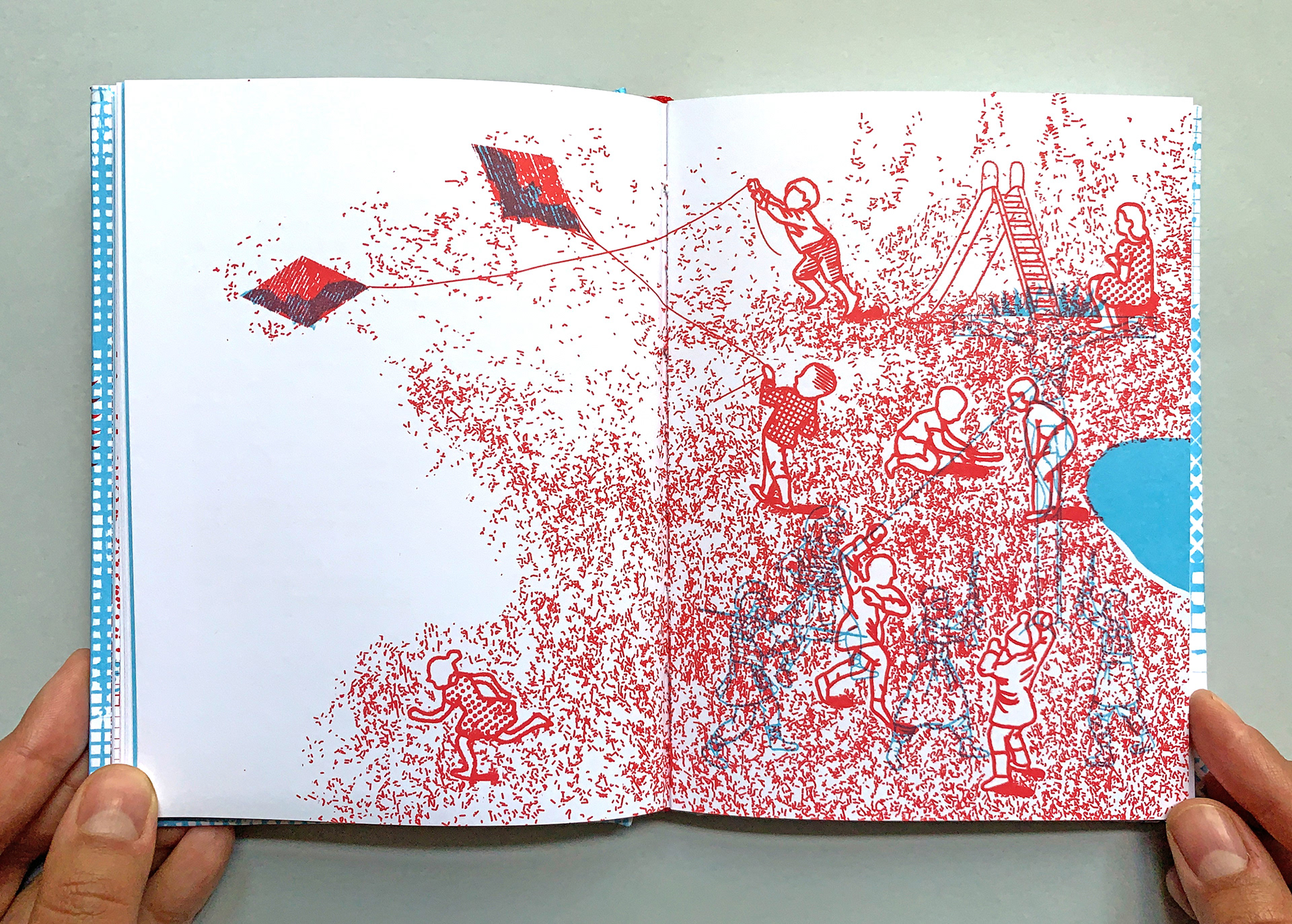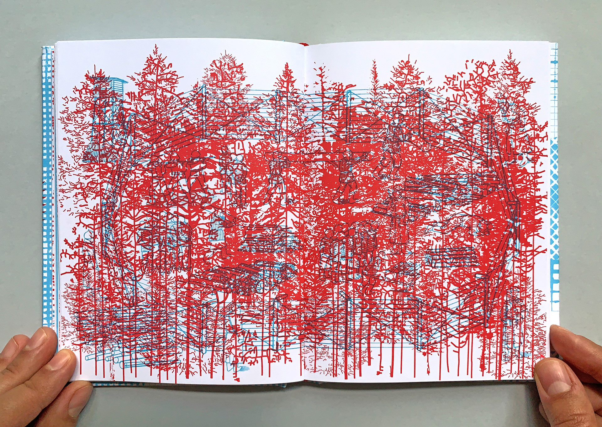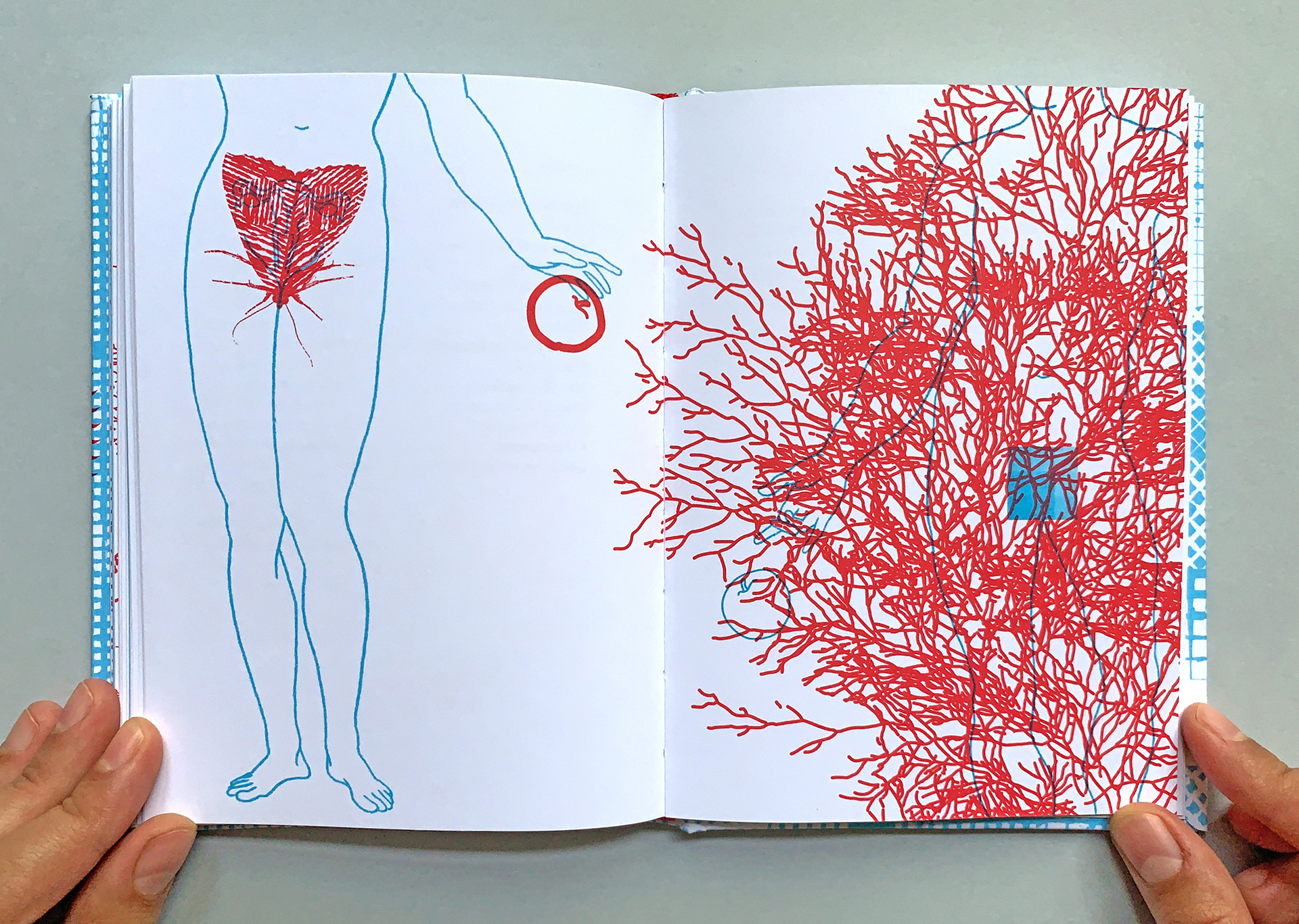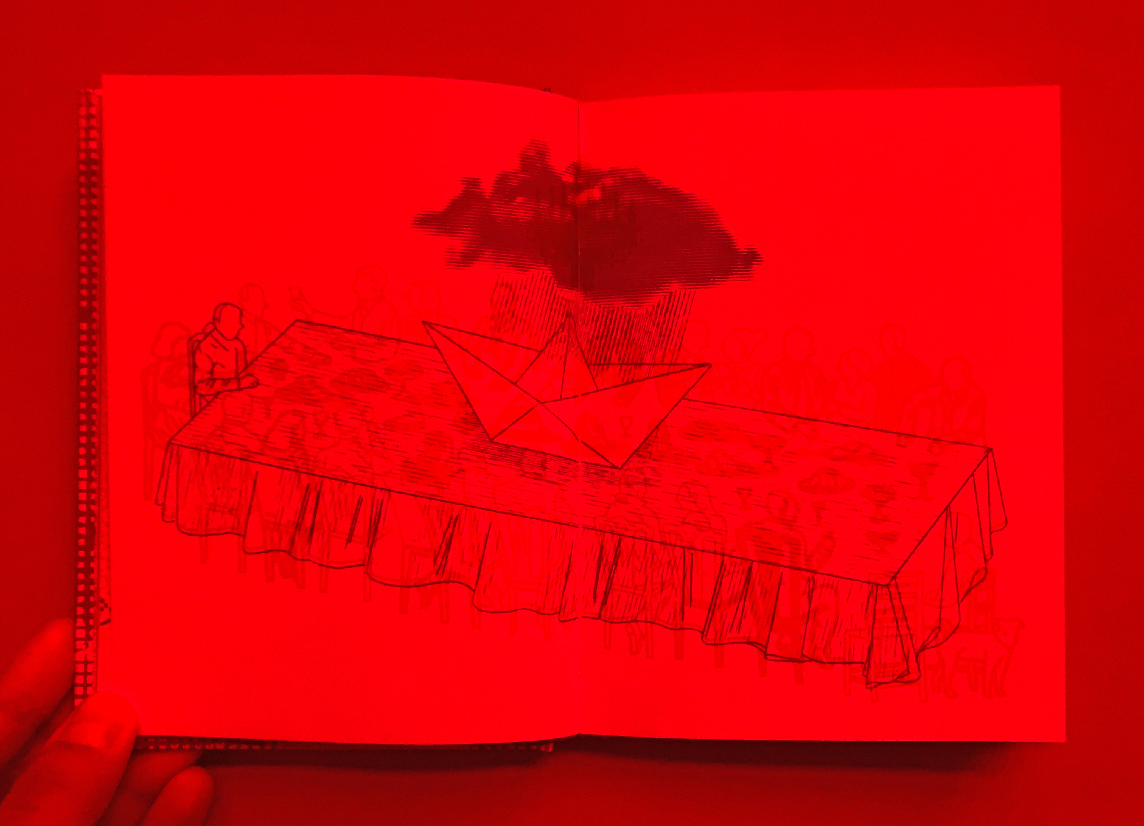 Optics of God – illustrated book of poetry by modern Ukrainian author Mariana Savka. Each illustration is printed with two colors – blue and red. Reader can look at the picture with a naked eye and through the red filter attached to the book, and the image will change.