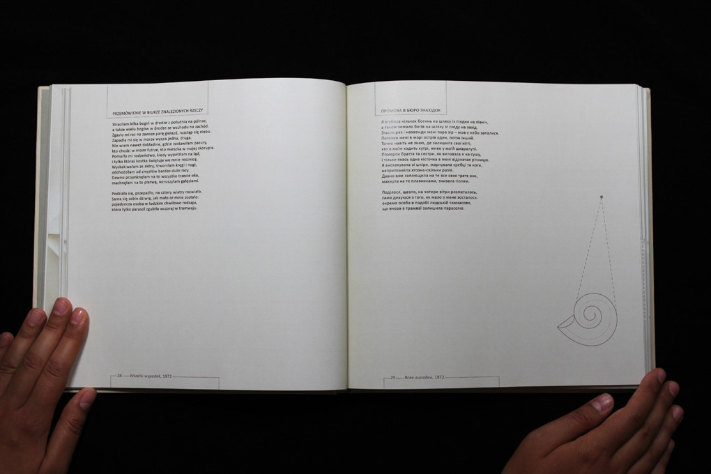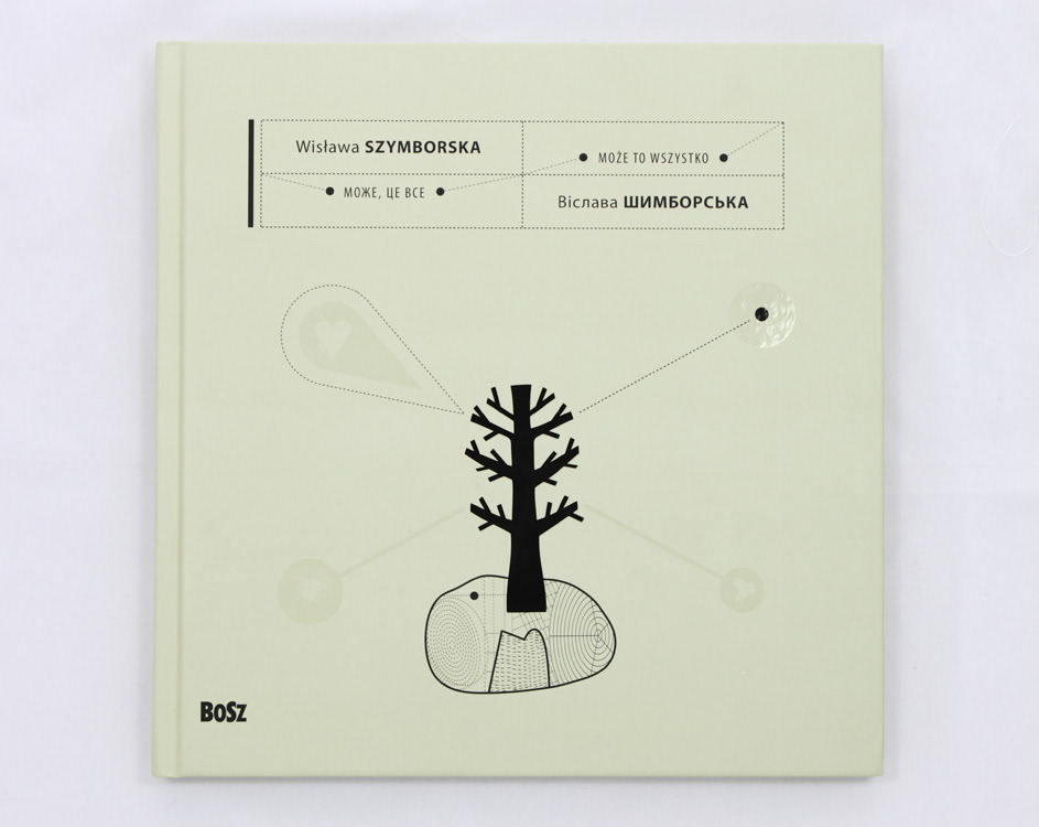 "Maybe All This" is an illustrated book of selected poems by Polish Nobel laureate Wislawa Szymborska, designed by Agrafka Studio during a scholarship program "Gaude Polonia" in Krakow, Poland. It is a bilingual edition (Polish - Ukrainian), translated by Andriy Savenets. Consists of 40 poems. 128 pages, format: 240 х 240 mm. Book was published in Poland by "BoSz" Publishing House in 2011.