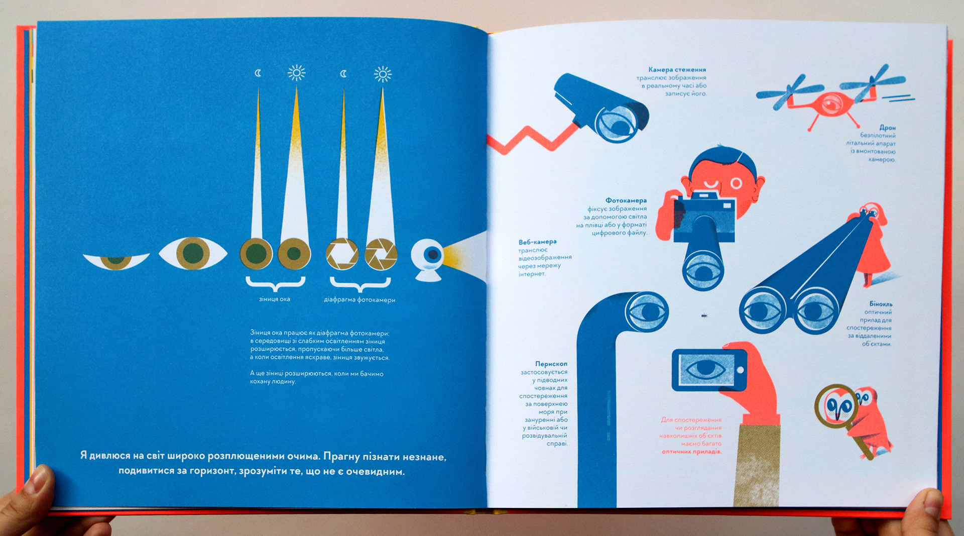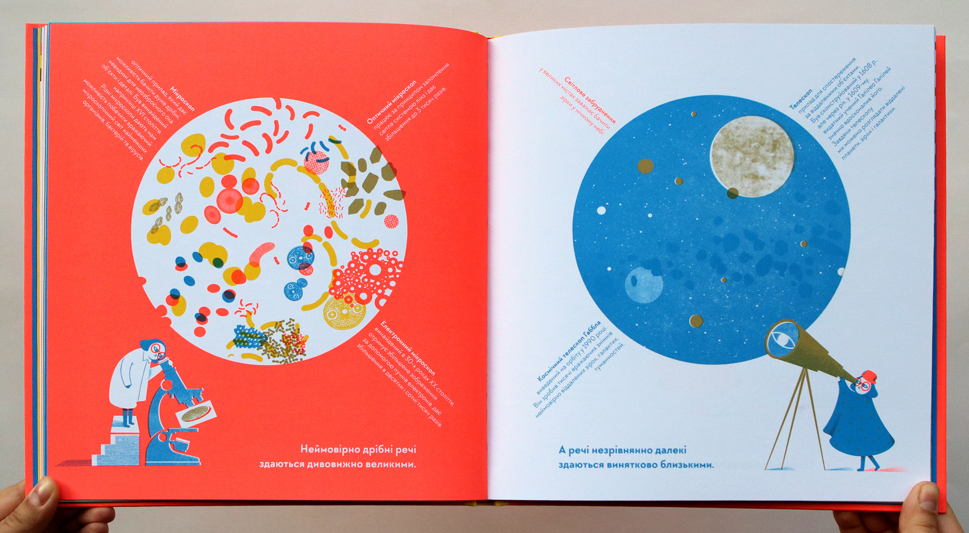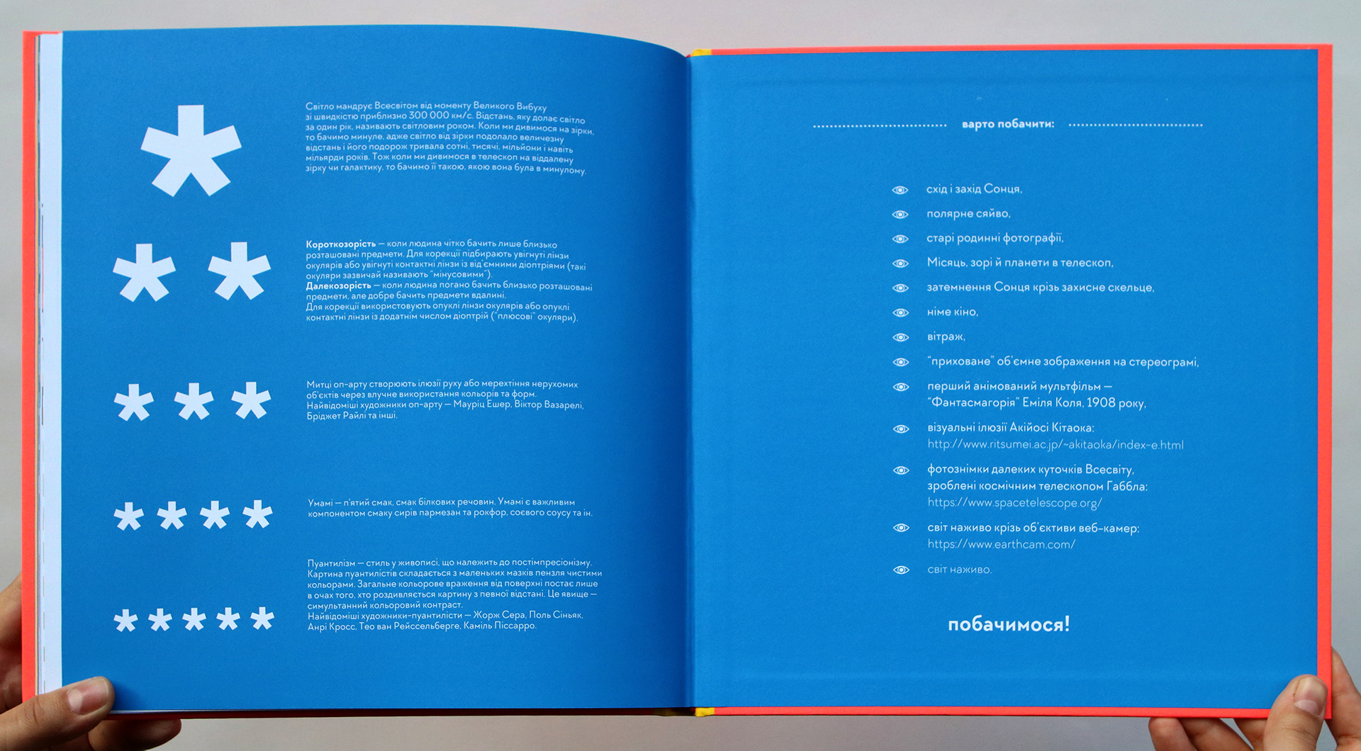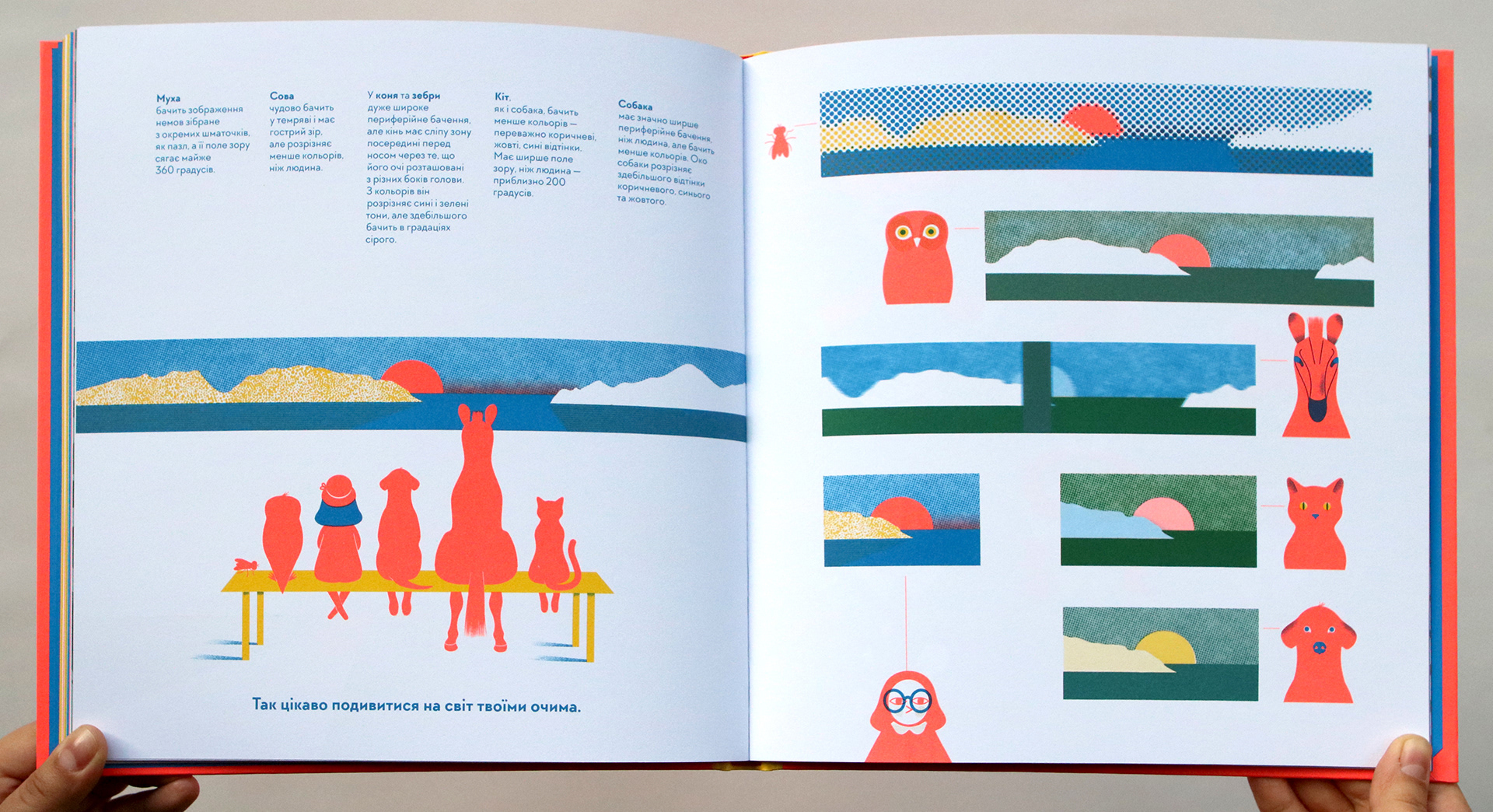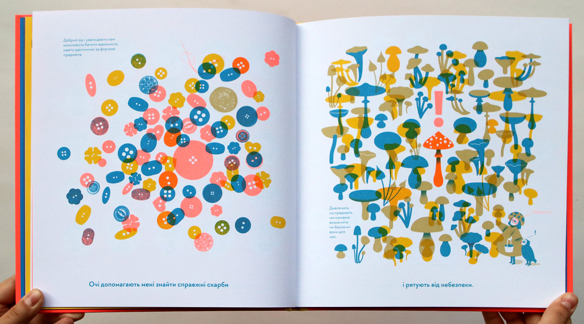 Some illustrations from our non-fiction book for childrens. The book “I see that” explores sight not only as sense of human body but also as philosophical vision of life. Here are many facts about visible and invisible world, light and darkness, art and esthetic. The main visual element in this book is a dot - it transforms into Braille alphabet dot, the planet, the eye or raster dot, showing the big mosaic of world around.
